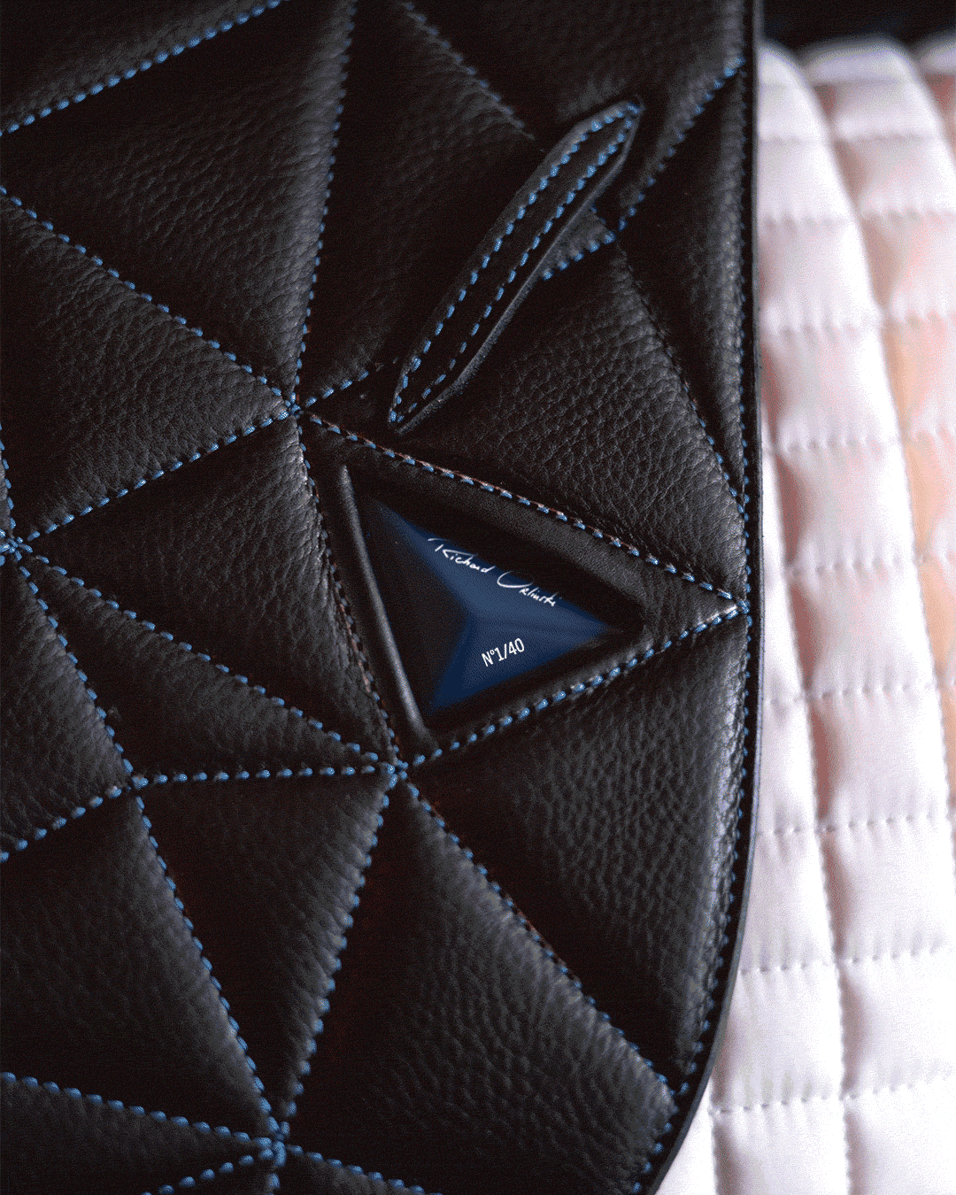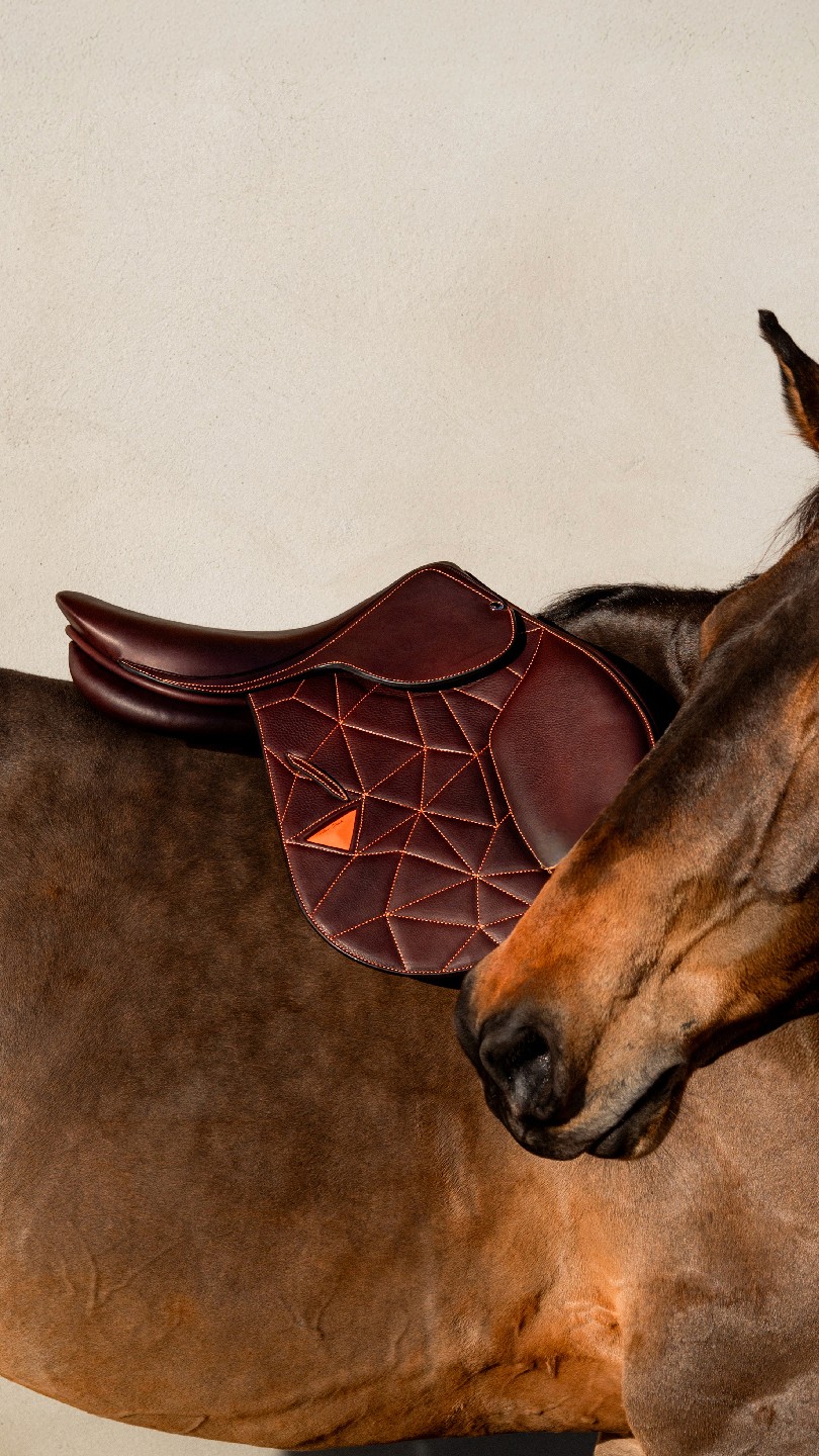 Chaque selle porte la patte Orlinski, reconnaissable à ses coutures inspirées des facettes iconiques de ses sculptures animalières, signature esthétique forte et immédiatement identifiable.